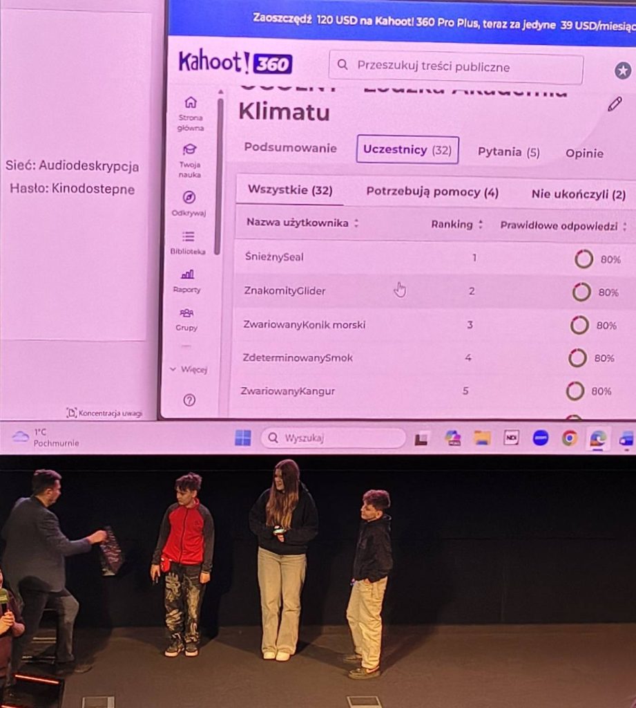 Uczniowie klas VIIa i VIa uczestniczyli w zajęciach Akademii Klimatu w EC1. Tematem spotkania był cyfrowy ślad węglowy. Zajęcia obejmowały serię filmów na temat korzystania z internetu i portali społecznościowych, jaki to ma wpływ na psychikę, na manipulowanie naszymi poglądami, a wreszcie, jak duży pozostawia ślad węglowy. W ramach spotkania został rozegrany quiz kohoot sprawdzający wiedzę uczestników zajęć. Na koniec uczniowie zapoznali się z możliwościami firm umieszczających reklamy i śledzących nasze poczyniania w Internecie i portalach społecznościowych i wynikających z tego zagrożeniach dla naszego zdrowia psychicznego. Podsumowując – im dłużej jesteś w sieci, tym większy pozostawiasz ślad węglowy, który zwiększa efekt cieplarniany na Ziemi.