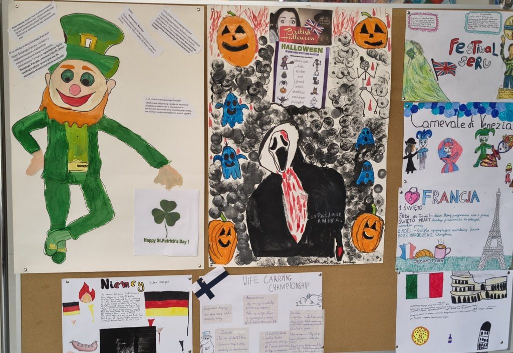 Europejski Dzień Języków 1 października 2025 Podczas obchodów Europejskiego Dnia Języków odbył się quiz wiedzowy dla uczniów klas VI-VIII oraz konkurs na plakat opowiadający o jednym ze świąt w wybranym państwie.