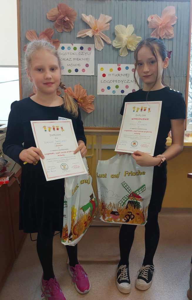 GRATULACJE! – dla uczennic z klasy IIIa, które reprezentowały naszą szkołę w III Międzyszkolnym Turnieju Logopedycznym – „Logotoki, czyli coraz piękniej mówię” zorganizowanym przez Bibliotekę SP 160 w Łodzi. Veronica S. zajęła I miejsce, a Emilia B. zdobyła wyróżnienie. Uczestnicy bawili się doskonale – wykonywali ćwiczenia artykulatorów, oddechowe oraz grali w logopedyczne gry planszowe. Nawet Panie nauczycielki wzięły udział w rywalizacji o najpiękniej wypowiedziany łamaniec językowy. Dziękujemy organizatorom!