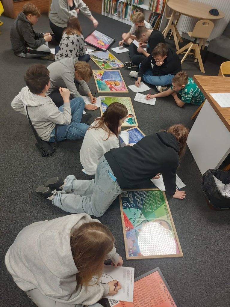 Siódmoklasiści w WOLNOŚCI 3 kwietnia 2025 Uczniowie klasy VIIa wzięli udział w zajęciach bibliotecznych na temat tolerancji. Odwiedzili bibliotekę „Wolność” mieszczącą się na Placu Wolności 4. Pracowali niezwykle aktywnie i wiele się nauczyli.