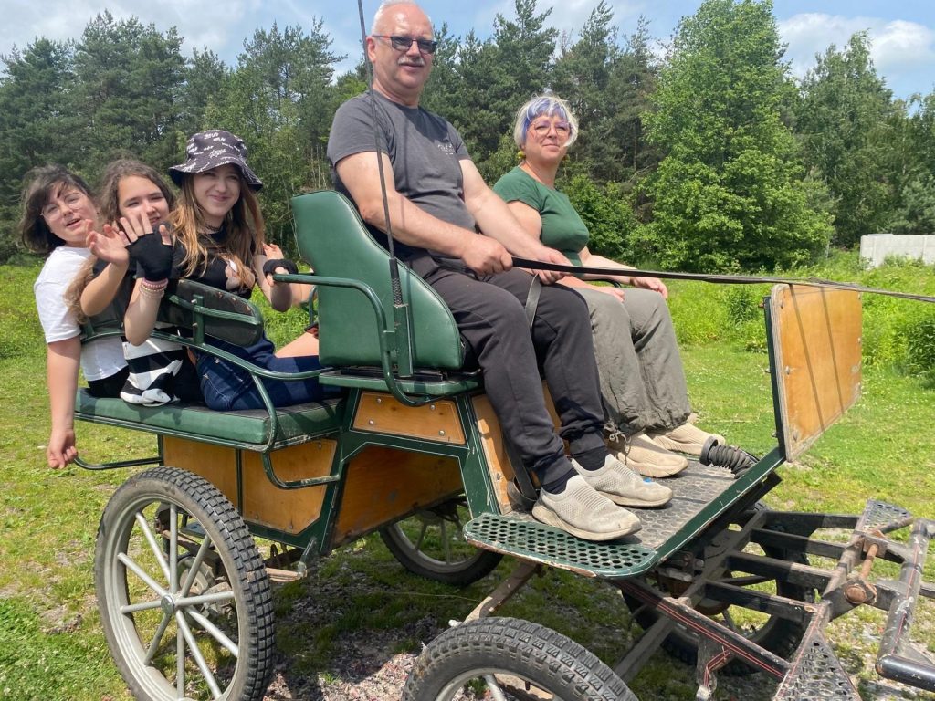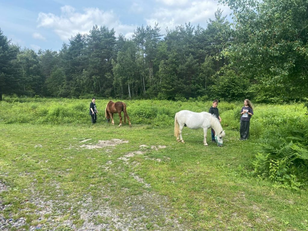 Jeździli bryczką, w siodle, piekli kiełbaski na ognisku, wykonywali zadania, dzięki którym było mnóstwo śmiechu Było świetnie. Godziny zabaw na świeżym powietrzu. Każdy znalazł coś dla siebie… Niektórzy postanowili namówić rodziców na jazdy konne lub zakup konia. Zobaczymy co rodzice na to.