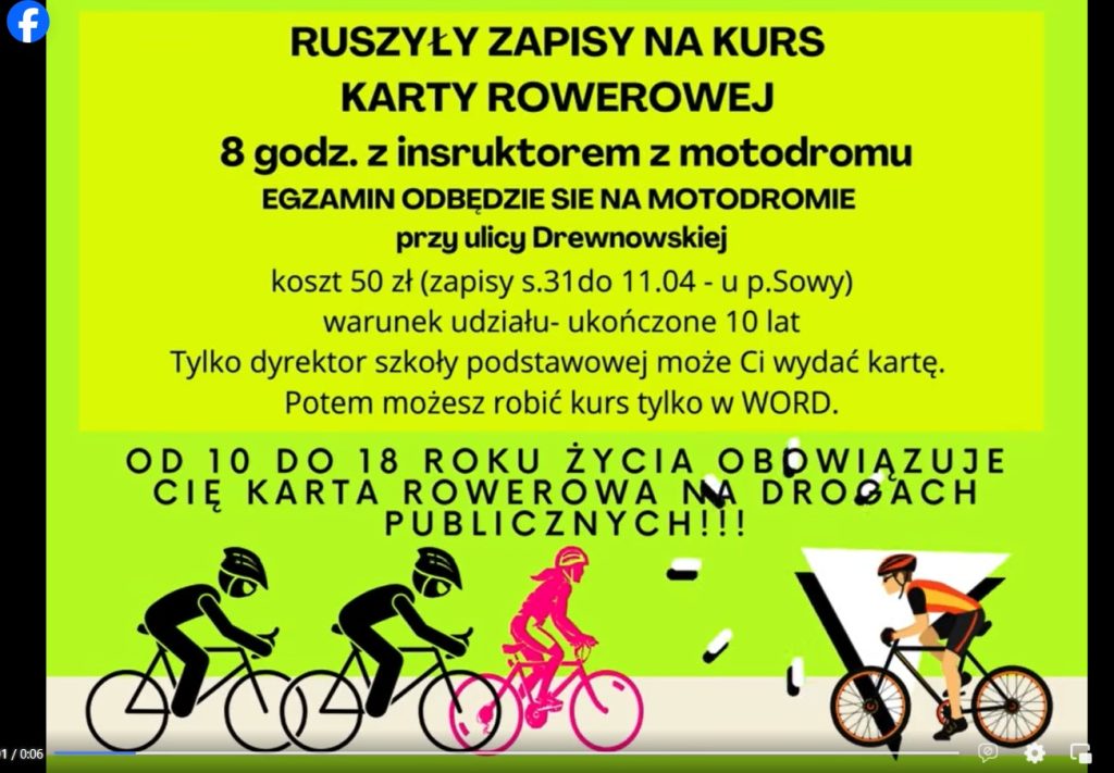 Zapraszamy na kurs karty rowerowej wszystkich uczniów klas IV – VIII. Przypominamy, że kartę rowerową można zdobyć tylko będąc uczniem szkoły podstawowej.